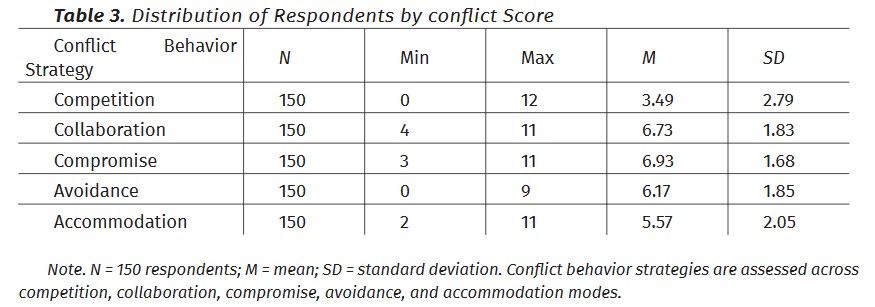 2.1.3. Conflict behavior strategies summary